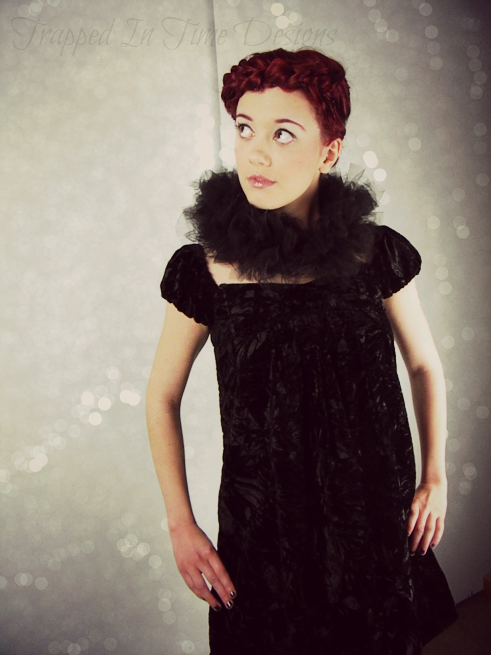 I have an upcoming order for a Wednesday Addams dress, and the client and I were ironing out the final design for it.  Of course, I had about a million ideas, ranging from the very traditional to the more “out there”: