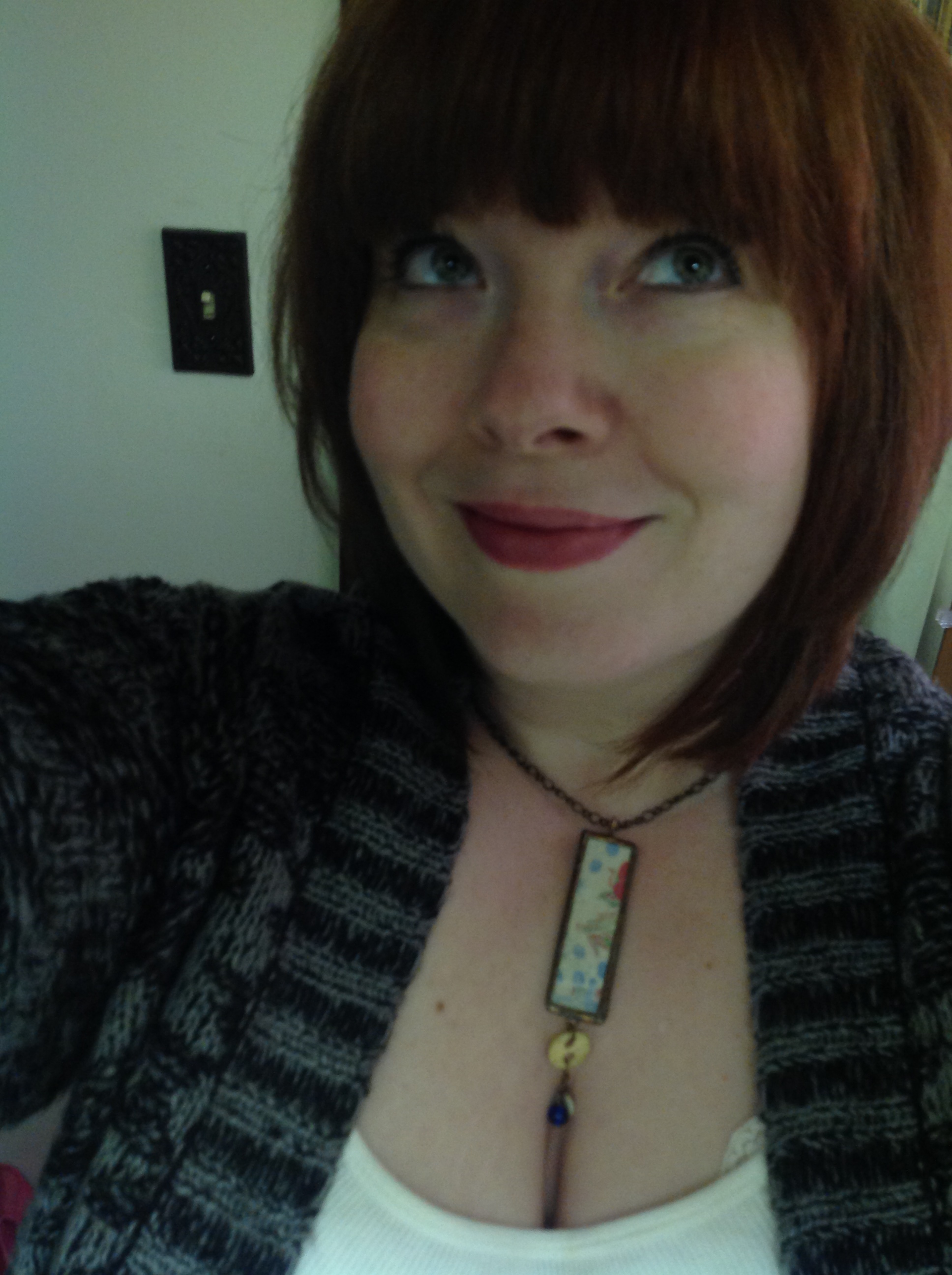 New hair-cut yesterday–I’ve been sporting side-swept bangs for years, and just got the itch to go with the full-on blunt bang.  So far I’m in love.  The verdict is still out on how everything will look with my regular curls.  I generally don’t have the stamina to straighten my hair daily, so the only time it’s done is at the stylists, after a cut.