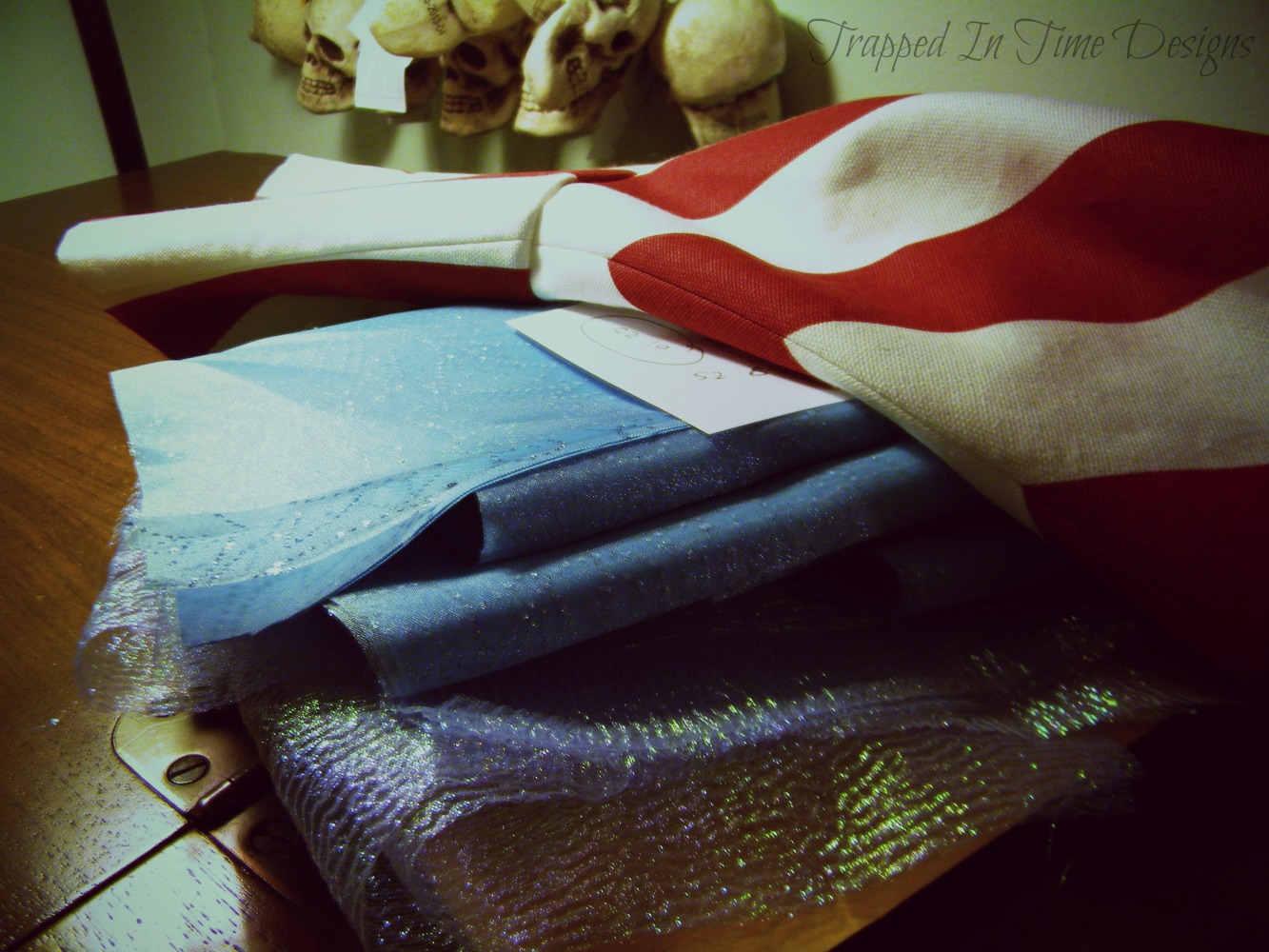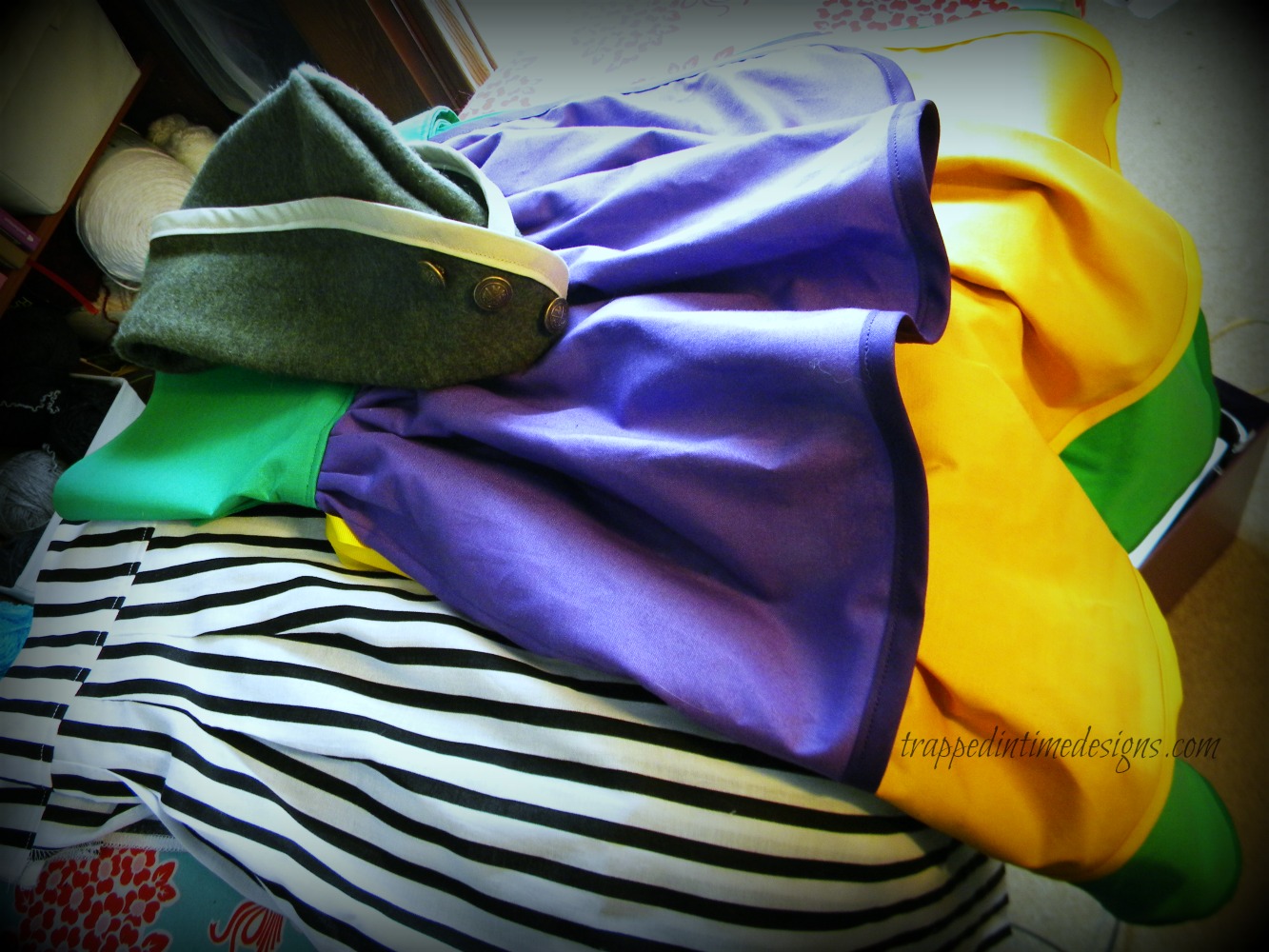 And a striped tunic, bustle and military hat came off the machines, too: