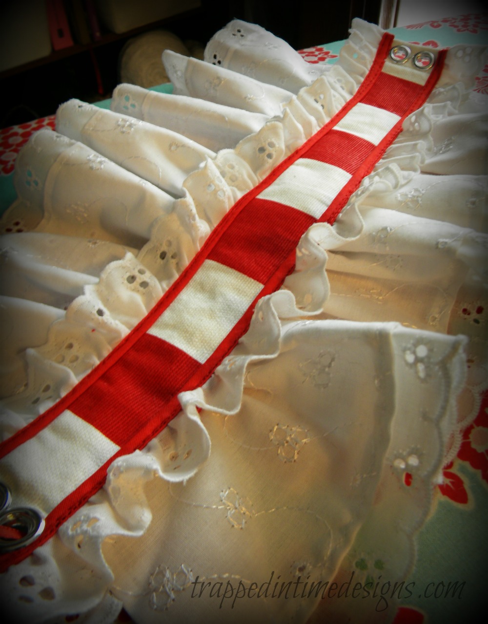 Created a super ruffly red and white striped choker.